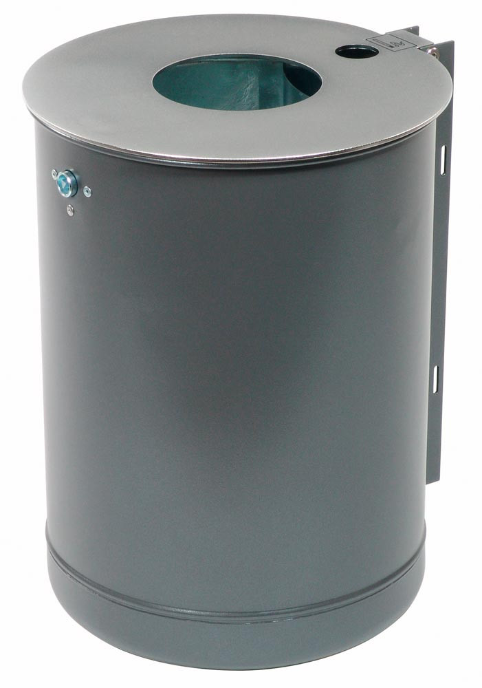 Abfallbehälter mit Ascher 50 l, m. Edelst.-Deckelscheibe DxH 380x515 mm, angeschw. U-Profilschiene zum Montage, Einsatzbehälter, DB703