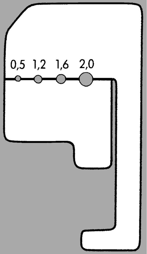 | Arbeitsbereich | 0,5 - 0,75 / 1,0 / 1,5 / 2,5 / 4,0 / 6,0 (AWG 20-19 / 17 / 15 / 13 / 11 / 10) mm² |