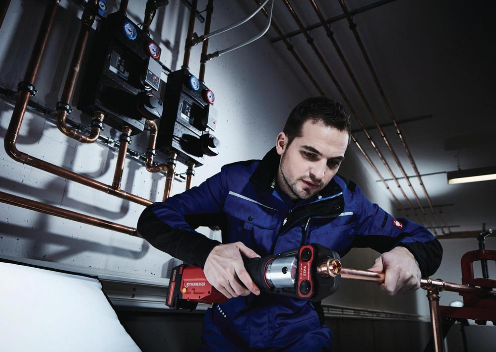 Das ROMAX 4000 Set EU beinhaltet die Pressbacken der Kontur SV in den Größen 15-22-28 mm. Die elektrohydraulische · radiale Pressmaschine ROMAX 4000 eignet sich ideal zum systemkonformen Verpressen von Fittings aus Metall · Kunststoff- und Mehrschichtverbundsystemen (MSR) bis 110 mm. Die ROMAX 4000 verpresst Fittings mit einer Kolbenkraft von 32-34 kN und einem Presszyklus von 5 Sekunden. Ergonomisches und energieeffizientes Arbeiten auch über längere Zeit · werden durch das geringe Gewicht von 3,6 kg und einer ausgewogene Gewichtsverteilung ermöglicht. Konstante Presskraft über den kompletten Presszyklus wird durch die Constant Force Technology (CFT) garantiert. Durch das verbesserte Serviceintervall von 40.000 Presszyklen / 2 Jahren · wird eine hohe Produktivität gewährleistet. Geringes Gewicht von 3,6 Kg für ermüdungsfreies Arbeiten auch in schwierigen SituationenSchnelles Arbeiten durch Verpressungen unter 5 SekundenErhöhte Leistungskapazität durch verbesserte Akku-TechnologieErhöhter Serviceintervall nach 40.000 Verpressungen / 2 Jahren Die elektrohydraulische Akku-Pressmaschine zum systemabhängigen Verpressen von Fittingen in der Sanitär- · Heizungs- oder Klimabranche.