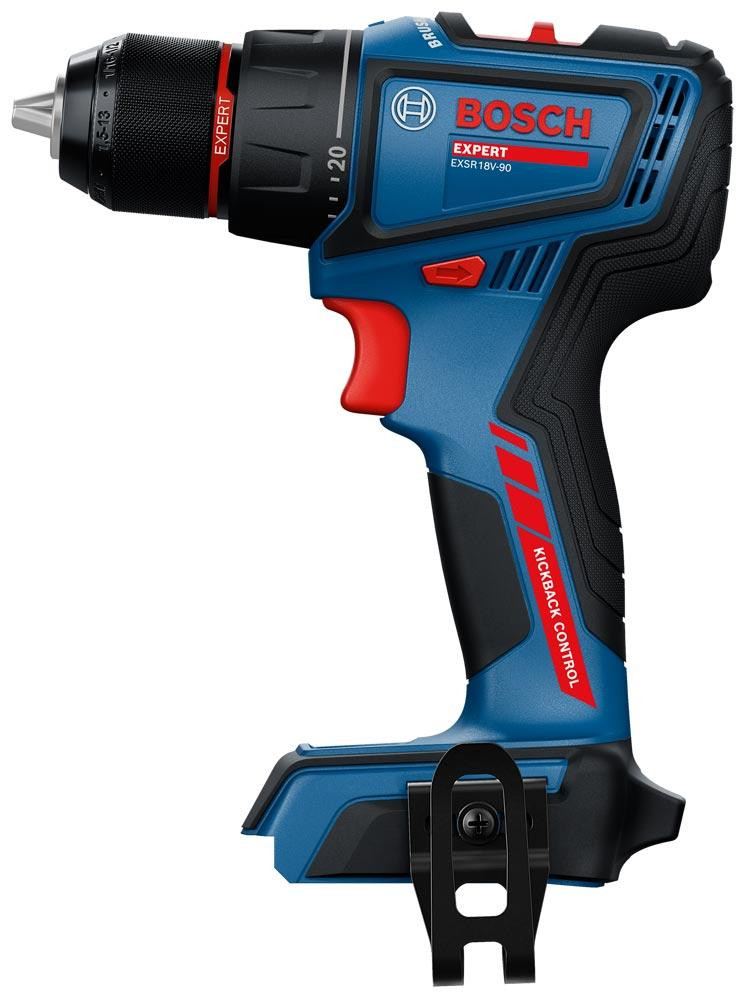 Leistungsstarker Akku-Bohrschrauber mit bürstenlosem EC-Motor für herausragende Leistung ∙ Kopflänge von 163 mm und 13-mm-Metallbohrfutter für mehr Robustheit und bessere Drehmomentübertragung ∙ Erhöhter Anwenderschutz durch abschaltbare KickBack Control ∙ Abschaltbare Präzisionskupplung stoppt das Überrasten und erlaubt eine individuelle Einstellung