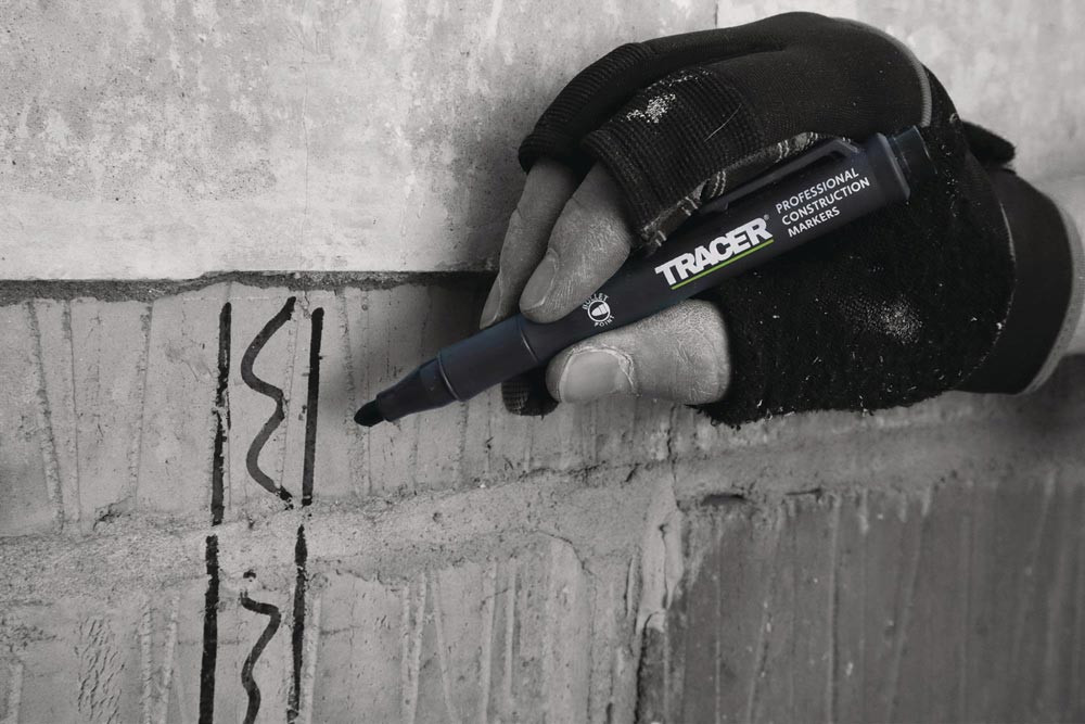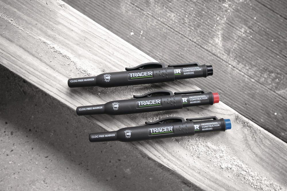 perfekte Paket für Industrie und Handwerk · dank der besonderen Zusammensetzung der Faser in der Spitze und einer speziellen Tinte wirken die Marker staub- und drecksabweisend · sie können auf praktisch jeder Oberfläche markieren, auch auf staubigen, glänzenden, öligen und feuchten Oberflächen · immer griffbereit mit dem TRACER Schaft