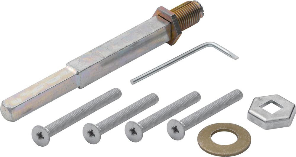 HOPPE-Befestigungs-Set: Gewindeschrauben M6 nach DIN 965-10.9 mit Kreuzschlitz-Senkkopf · HOPPE-FDW-Vollstift (abgesetzt von 10 auf 8 mm) mit Tellerfeder · Montage-Hülse und Demontage-Schlüssel · für HOPPE-Schutz-Wechsel-Garnituren ES1/ES2 (SK2/SK3) mit HOPPE-Schnellstift · mit den Knöpfen (E)61G · (E/M)86G und den Schildern (E)2210 · (E/M)3310 · verdeckte Befestigung