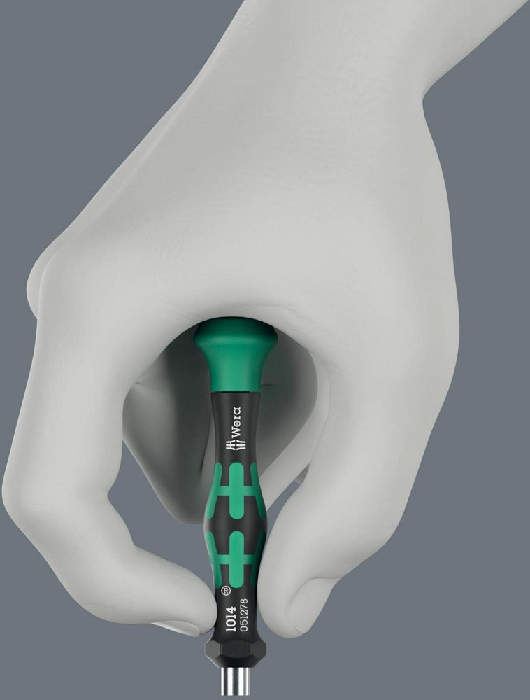 geeignet für Bits mit 4 mm Antrieb · mit Magnet für sicheren Sitz des Bits in der Bitaufnahme · Kraftform Micro-Griff mit Abrollschutz und drehbarer Kappe, mehrkomponentig