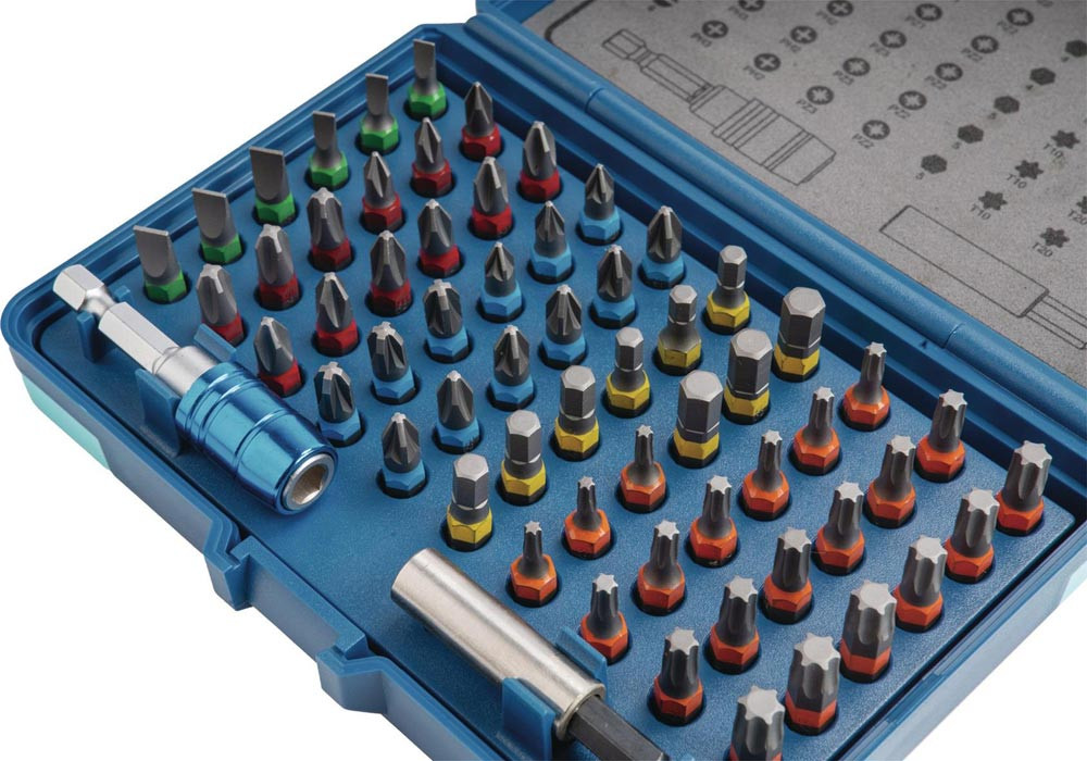 bestückt mit zähharten Bits mit Farbleitsystem und zwei Bithaltern · für Hand- und Maschinenbetrieb (konv. Akkuschrauber)