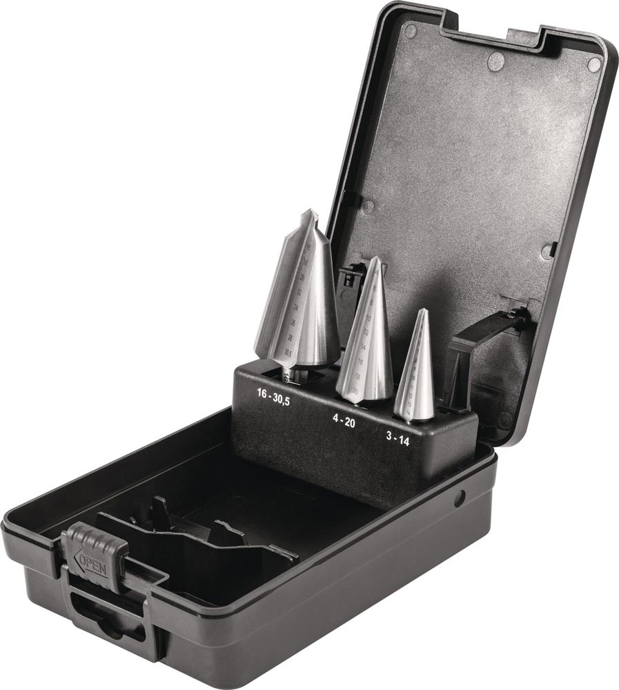 Blechschälbohrersatz 3-14/4-20/16-30,5 mm HSS 3 teilig Kunststoffkassette E6498542