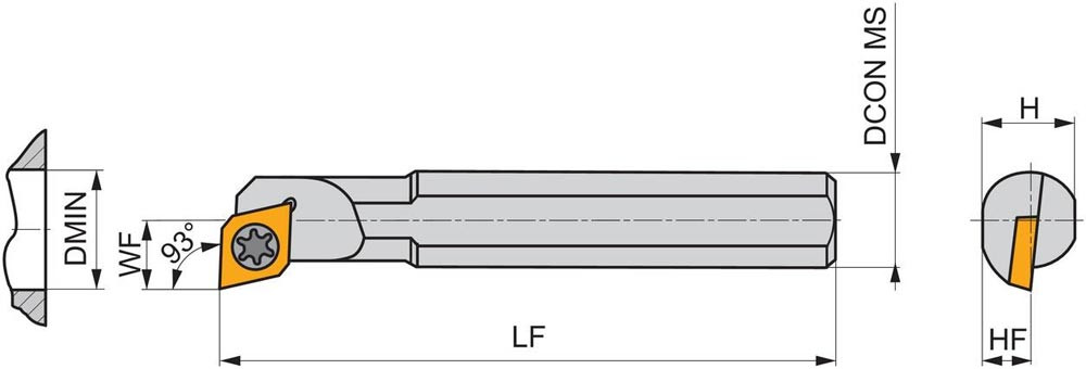 Dreh-Bohrstange mit Schraubklemmung zum spannen von 75° Rhombus positive Wendeschneidplatten mit einem Innenkreisdurchmesser von 5.56mm · 2.38mm Dick (ISO Bezeichnung EP.. 0502.. ) · linke Ausführung zum 93° Längsdrehen mit abgesetzem Schaft · Stahl ohne Kühlkanalbohrung · 6mm Durchmesser x 100mm Länge für Innenkegeldrehen und Längsdrehen mit und ohne Schulter