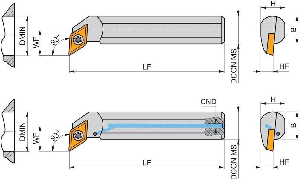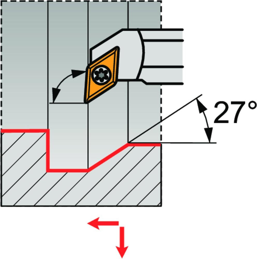 Dreh-Bohrstange mit Schraubklemmung zum spannen von 55° Rhombus positive Wendeschneidplatten mit einem Innenkreisdurchmesser von 9.525mm · 3.97mm Dick (ISO Bezeichnung DC.. 11T3.. ) · linke Ausführung zum 93° Längsdrehen mit abgesetzem Schaft · Stahl ohne Kühlkanalbohrung · 20mm Durchmesser x 250mm Länge für Innenkegeldrehen · Kopierdrehen in einer und mehreren Richtungen und Längsdrehen mit und ohne Schulter