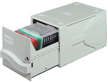 Multimedia Box I zur Archivierung von ca. 26 CDs/DVDs in Hardbox oder 136 Disketten (3,5″) mit 5 Trennplatten. Multimedia Box I und II lassen sich miteinander kombinieren und können vertikal und horizontal fest miteinander verbunden werden. Mit verchromtem Schloss.