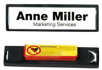 Magnetschilder sind nicht für Personen mit Herzschrittmacher geeignet. Befestigung mit Magnet mit starker Haftkraft für materialschonendes und einfaches Befestigen auch an empfindlichen Textilien. Schwarzer Rahmen. Fenster herauskippen · Einsteckschild einlegen · Fenster andrücken. Gute Lesbarkeit durch das gewölbte Fenster mit Lupeneffekt. Einfache Beschriftung mit kostenloser DURAPRINT® Software.