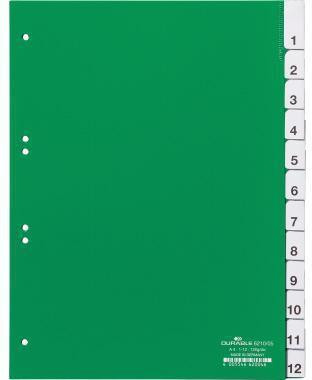 DURABLE Register 621005 DIN A4 1-12 12teilig Hartfolie grün