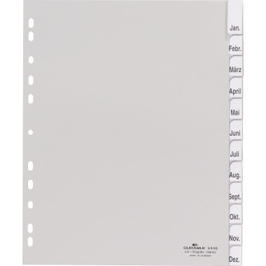 DURABLE Register 644610 DIN A4 überbreit 12tlg PP grau