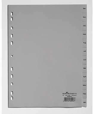 DURABLE Register 650710 DIN A4 volldeckend Dez-Jan 12tlg. PP grau