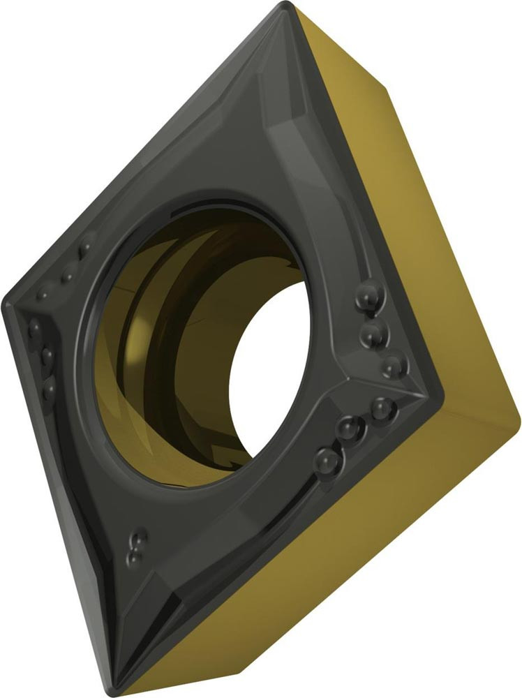 Einseitige positive Drehwendeschneidplatte · 80° Rhombisch mit 7° Freiwinkel · Innenkreisdurchmesser von 6.35mm · 2.38mm Dick · 0.2mm Radius · Indexgenauigkeit nach ISO-Toleranzklasse-M · Spanbrecher FM mit verrundeter Schneidkante · im Substrat T9415 · MT-CVD beschichtet WC-Co Substrat im ISO-Bereich P05 -P30 · zum schlichten bis medium bearbeiten von Stählen