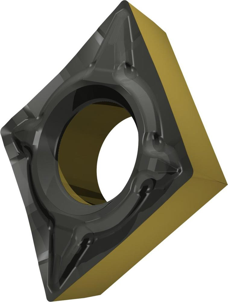 Einseitige positive Drehwendeschneidplatte · 80° Rhombisch mit 7° Freiwinkel · Innenkreisdurchmesser von 6.35mm · 2.38mm Dick · 0.2mm Radius · Indexgenauigkeit nach ISO-Toleranzklasse-M · Spanbrecher UR mit verrundeter Schneidkante · im Substrat T9415 · MT-CVD beschichtet WC-Co Substrat im ISO-Bereich P05 -P30 · zum schlichten bis schruppen bearbeiten von Stählen