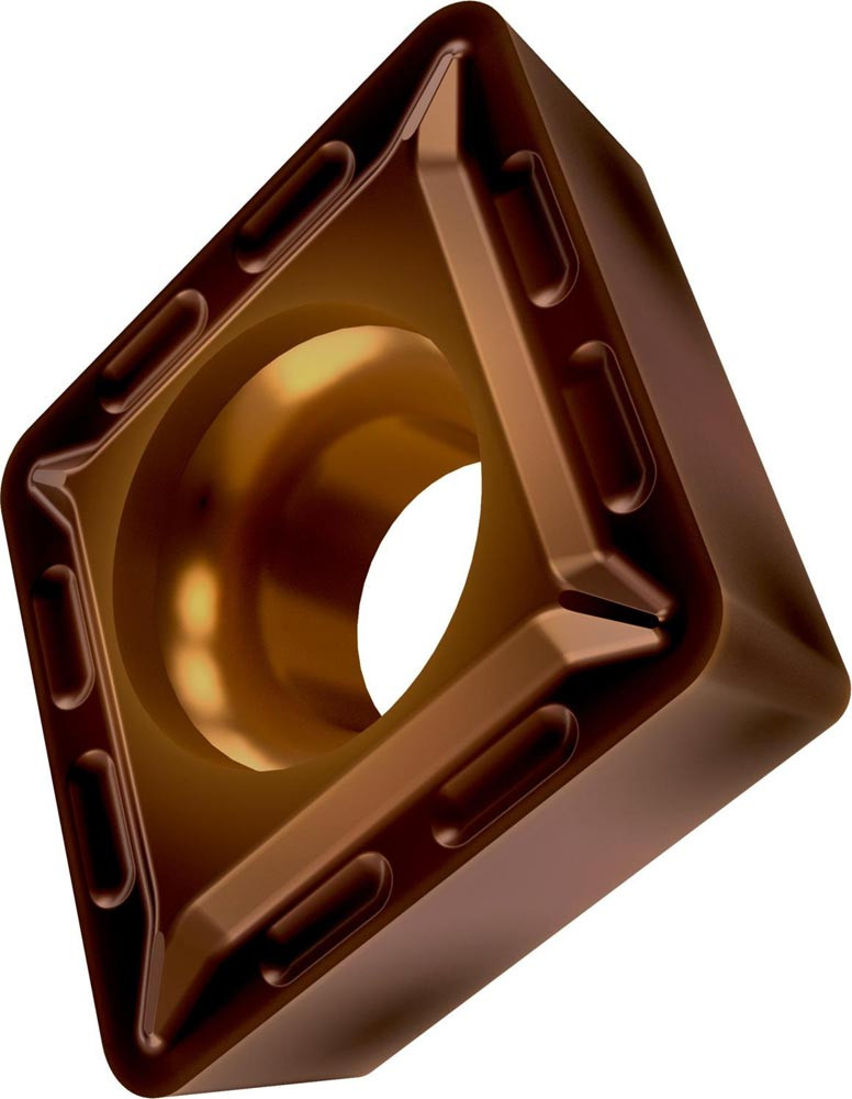 Einseitige positive Drehwendeschneidplatte · 80° Rhombisch mit 7° Freiwinkel · Innenkreisdurchmesser von 9.525mm · 3.97mm Dick · 0.8mm Radius · Indexgenauigkeit nach ISO-Toleranzklasse-M · Spanbrecher UR mit verrundeter Schneidkante · im Substrat T9325 · MT-CVD beschichtet functionally graded WC-Co carbide im ISO-Bereich P15 -P35 · zum schlichten bis schruppen bearbeiten von Stählen