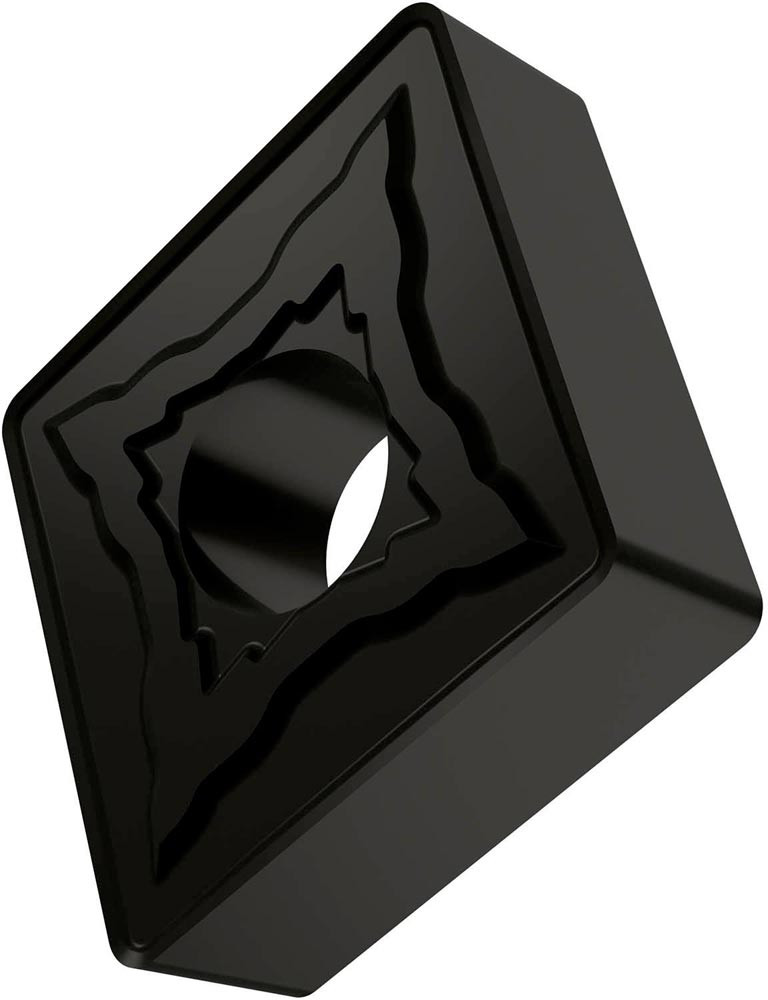 Doppelseitige negative Drehwendeschneidplatte · 80° Rhombisch mit Innenkreisdurchmesser von 12.7mm · 4.76mm Dick · 1.2mm Radius · Indexgenauigkeit nach ISO-Toleranzklasse-M · Spanbrecher NMR mit verrundeter Schneidkante · im Substrat T7335 · MT-CVD beschichtet functionally graded WC-Co carbide in den ISO-Bereichen M20 -M40 und S15 -S25 · zum schlichten bis schruppen bearbeiten von nichtrostenden Stählen und Superlegierungen