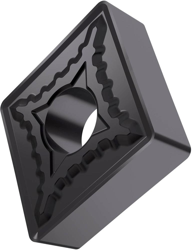 Doppelseitige negative Drehwendeschneidplatte · 80° Rhombisch mit Innenkreisdurchmesser von 12.7mm · 4.76mm Dick · 1.2mm Radius · Indexgenauigkeit nach ISO-Toleranzklasse-M · Spanbrecher SM mit verrundeter Schneidkante · im Substrat T6310 · PVD beschichtet WC-Co Feinstkornsubstrat in den ISO-Bereichen P01 -P15/M01 -M15/K05 -K20 und S01 -S15 · zum schlichten bis schruppen bearbeiten von Stählen · nichtrostenden Stählen · Gusseisen und Superlegierungen