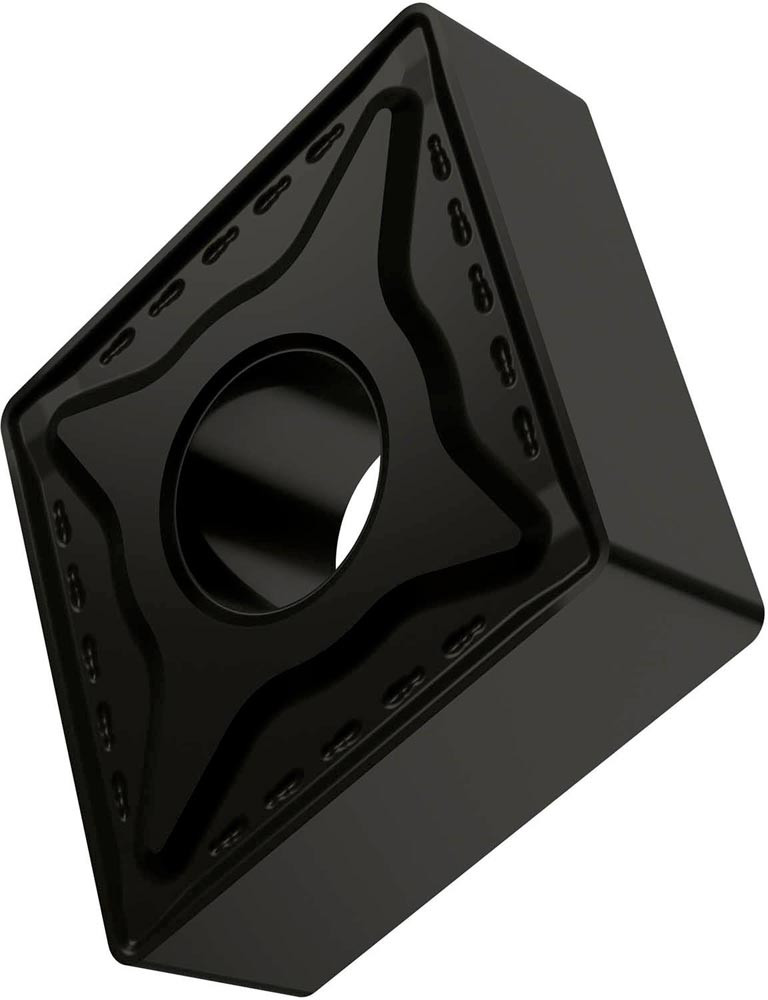 Doppelseitige negative Drehwendeschneidplatte · 80° Rhombisch mit Innenkreisdurchmesser von 15.575mm · 6.35mm Dick · 1.2mm Radius · Indexgenauigkeit nach ISO-Toleranzklasse-M · Spanbrecher RM mit verrundeter Schneidkante · im Substrat T9335 · MT-CVD beschichtet functionally graded WC-Co carbide in den ISO-Bereichen P20 -P45 und M15 -M40 · zum medium bis schruppen bearbeiten von Stählen und nichtrostenden Stählen