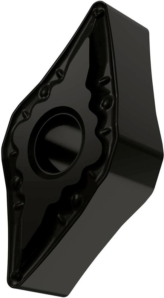 Doppelseitige negative Drehwendeschneidplatte · 55° Rhombisch mit Innenkreisdurchmesser von 9.525mm · 4.76mm Dick · 0.8mm Radius · Indexgenauigkeit nach ISO-Toleranzklasse-M · Spanbrecher FM mit verrundeter Schneidkante · im Substrat T9325 · MT-CVD beschichtet functionally graded WC-Co carbide im ISO-Bereich P15 -P35 · zum schlichten bis medium bearbeiten von Stählen
