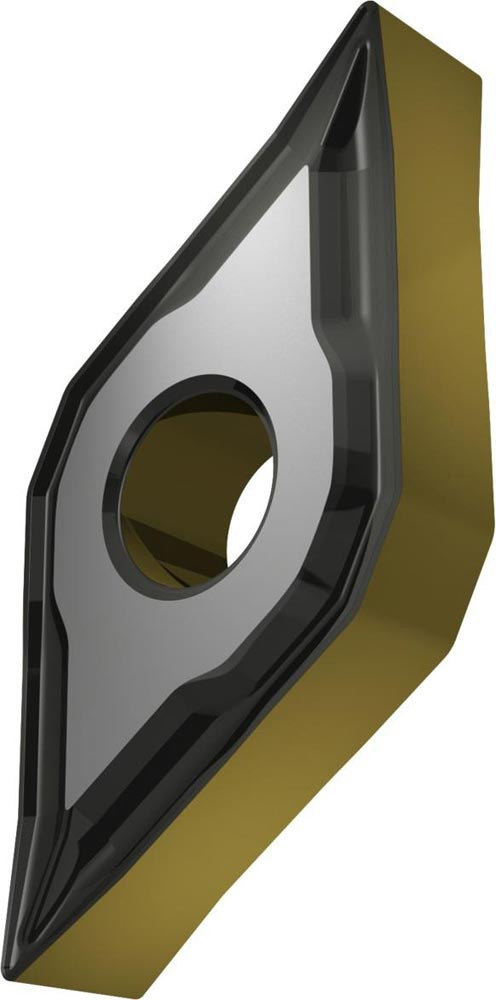 Doppelseitige negative Drehwendeschneidplatte · 55° Rhombisch mit Innenkreisdurchmesser von 12.7mm · 4.76mm Dick · 0.4mm Radius · Indexgenauigkeit nach ISO-Toleranzklasse-M · Spanbrecher NF mit verrundeter Schneidkante · im Substrat T9415 · MT-CVD beschichtet WC-Co Substrat im ISO-Bereich P05 -P30 · zum schlichten bis medium bearbeiten von Stählen