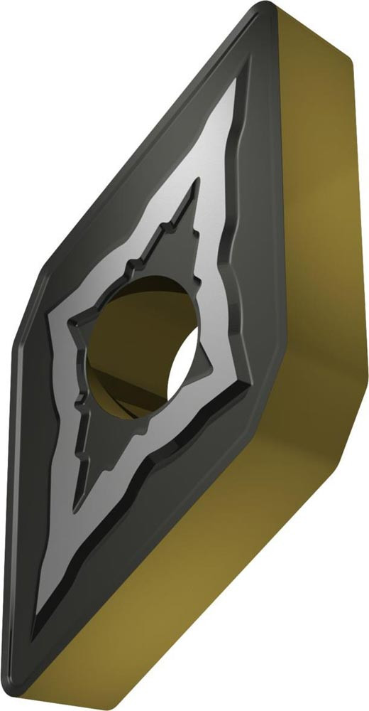 Doppelseitige negative Drehwendeschneidplatte · 55° Rhombisch mit Innenkreisdurchmesser von 12.7mm · 4.76mm Dick · 0.8mm Radius · Indexgenauigkeit nach ISO-Toleranzklasse-M · Spanbrecher NMR mit verrundeter Schneidkante · im Substrat T9415 · MT-CVD beschichtet WC-Co Substrat im ISO-Bereich P05 -P30 · zum schlichten bis schruppen bearbeiten von Stählen