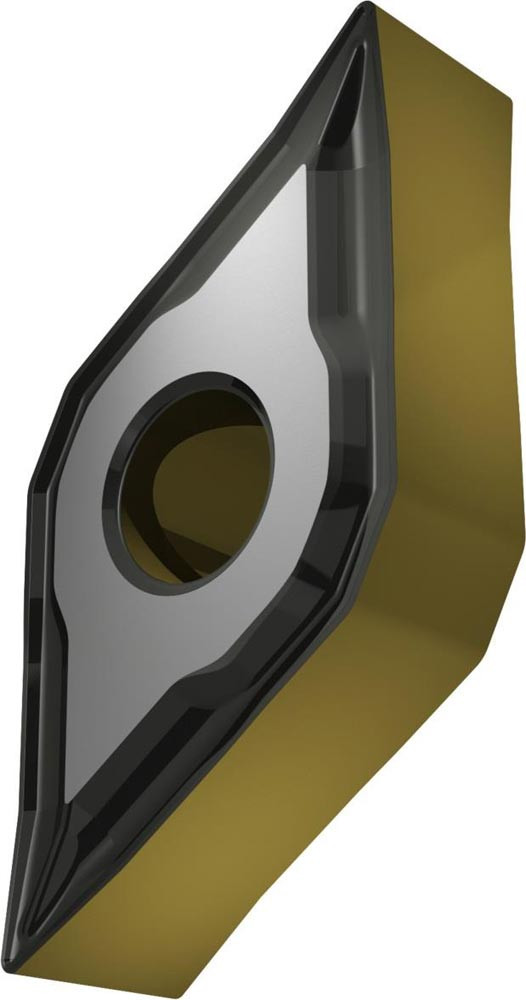 Doppelseitige negative Drehwendeschneidplatte · 55° Rhombisch mit Innenkreisdurchmesser von 12.7mm · 6.35mm Dick · 0.4mm Radius · Indexgenauigkeit nach ISO-Toleranzklasse-M · Spanbrecher NF mit verrundeter Schneidkante · im Substrat T9415 · MT-CVD beschichtet WC-Co Substrat im ISO-Bereich P05 -P30 · zum schlichten bis medium bearbeiten von Stählen