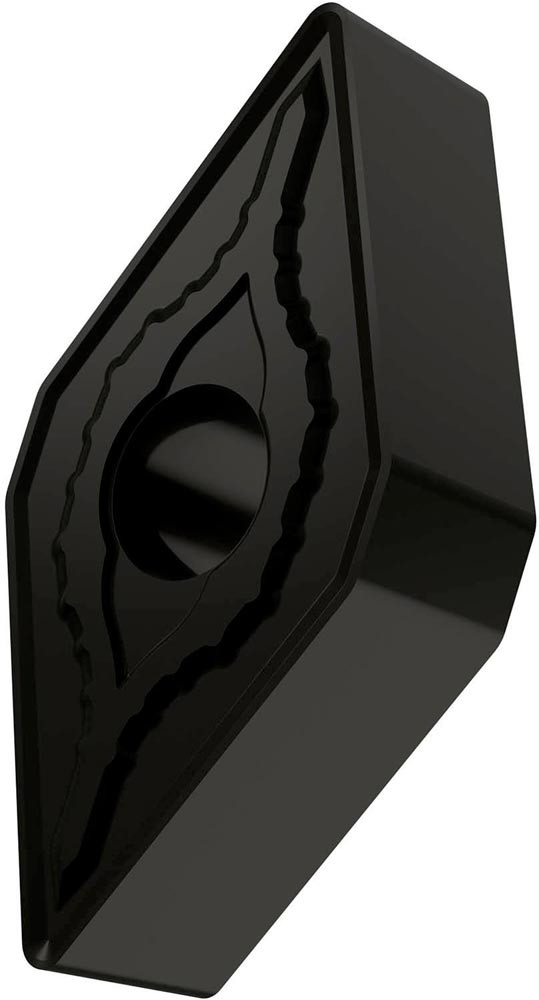 Doppelseitige negative Drehwendeschneidplatte · 55° Rhombisch mit Innenkreisdurchmesser von 12.7mm · 6.35mm Dick · 0.4mm Radius · Indexgenauigkeit nach ISO-Toleranzklasse-M · Spanbrecher SM mit verrundeter Schneidkante · im Substrat T7325 · MT-CVD beschichtet functionally graded WC-Co carbide in den ISO-Bereichen M10 -M25 und S10 -S25 · zum schlichten bis schruppen bearbeiten von nichtrostenden Stählen und Superlegierungen