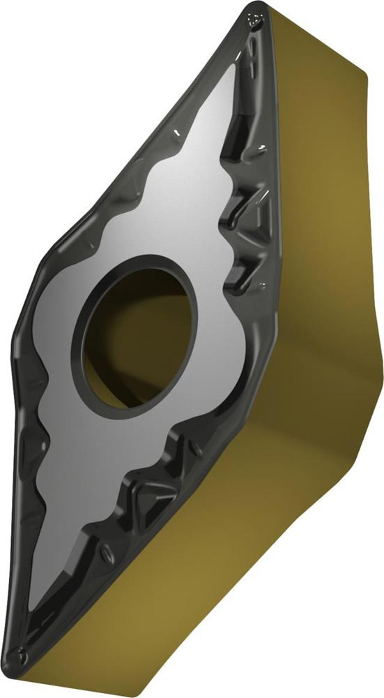 Doppelseitige negative Drehwendeschneidplatte · 55° Rhombisch mit Innenkreisdurchmesser von 12.7mm · 6.35mm Dick · 0.8mm Radius · Indexgenauigkeit nach ISO-Toleranzklasse-M · Spanbrecher FM mit verrundeter Schneidkante · im Substrat T9415 · MT-CVD beschichtet WC-Co Substrat im ISO-Bereich P05 -P30 · zum schlichten bis medium bearbeiten von Stählen