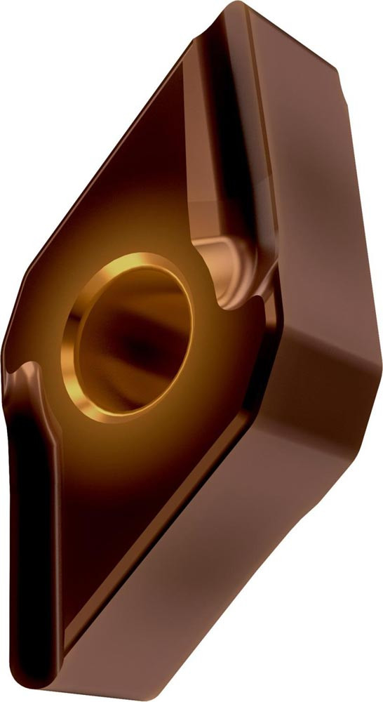 Doppelseitige negative Drehwendeschneidplatte · 55° Rhombisch mit Innenkreisdurchmesser von 12.7mm · 6.35mm Dick · 0.8mm Radius · Indexgenauigkeit nach ISO-Toleranzklasse-M · Spanbrecher SI mit verrundeter Schneidkante · im Substrat T8430 · PVD beschichtet WC-Co Feinkornsubstrat in den ISO-Bereichen P20 -P40 und M20 -M35 · zum medium bis schruppen bearbeiten von Stählen und nichtrostenden Stählen mit einem linksschneidendem Werkzeug