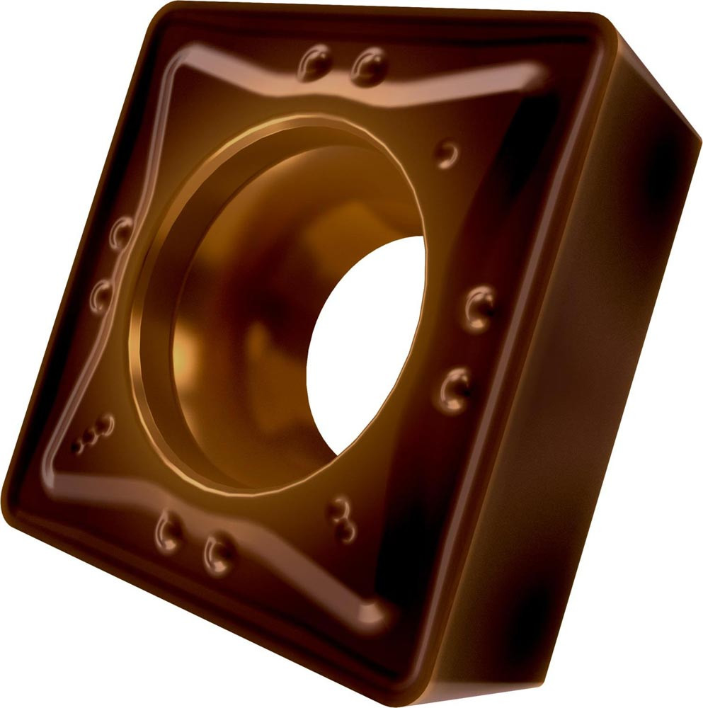 Einseitige positive Drehwendeschneidplatte · Viereckig mit 7° Freiwinkel · Innenkreisdurchmesser von 12.7mm · 4.76mm Dick · 0.8mm Radius · Indexgenauigkeit nach ISO-Toleranzklasse-M · Spanbrecher RM mit verrundeter Schneidkante · im Substrat T8430 · PVD beschichtet WC-Co Feinkornsubstrat in den ISO-Bereichen P20 -P40 und M20 -M35 · zum schlichten bis schruppen bearbeiten von Stählen und nichtrostenden Stählen