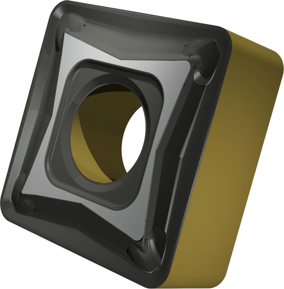 Doppelseitige negative Drehwendeschneidplatte · Viereckig mit Innenkreisdurchmesser von 12.7mm · 4.76mm Dick · 1.2mm Radius · Indexgenauigkeit nach ISO-Toleranzklasse-M · Spanbrecher M mit verrundeter Schneidkante · im Substrat T9415 · MT-CVD beschichtet WC-Co Substrat im ISO-Bereich P05 -P30 · zum schlichten bis schruppen bearbeiten von Stählen