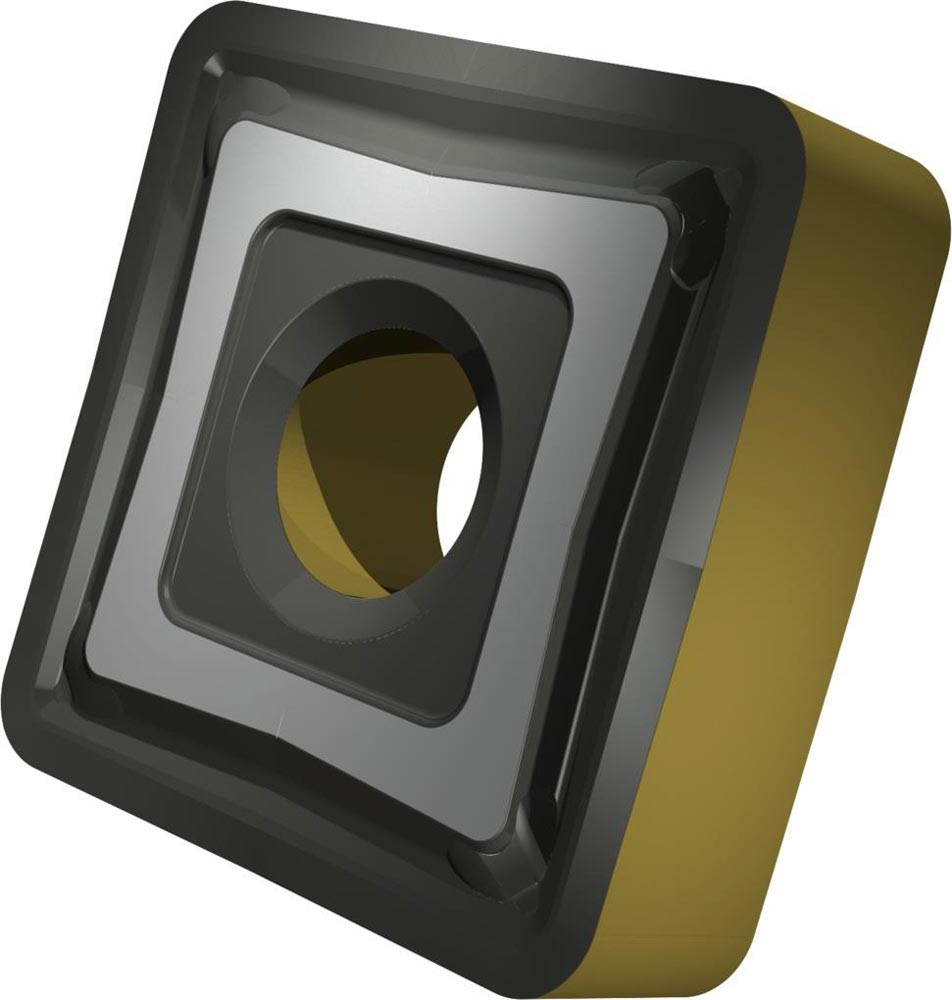 Doppelseitige negative Drehwendeschneidplatte · Viereckig mit Innenkreisdurchmesser von 19.05mm · 6.35mm Dick · 1.2mm Radius · Indexgenauigkeit nach ISO-Toleranzklasse-M · Spanbrecher M mit verrundeter Schneidkante · im Substrat T9415 · MT-CVD beschichtet WC-Co Substrat im ISO-Bereich P05 -P30 · zum schlichten bis schruppen bearbeiten von Stählen