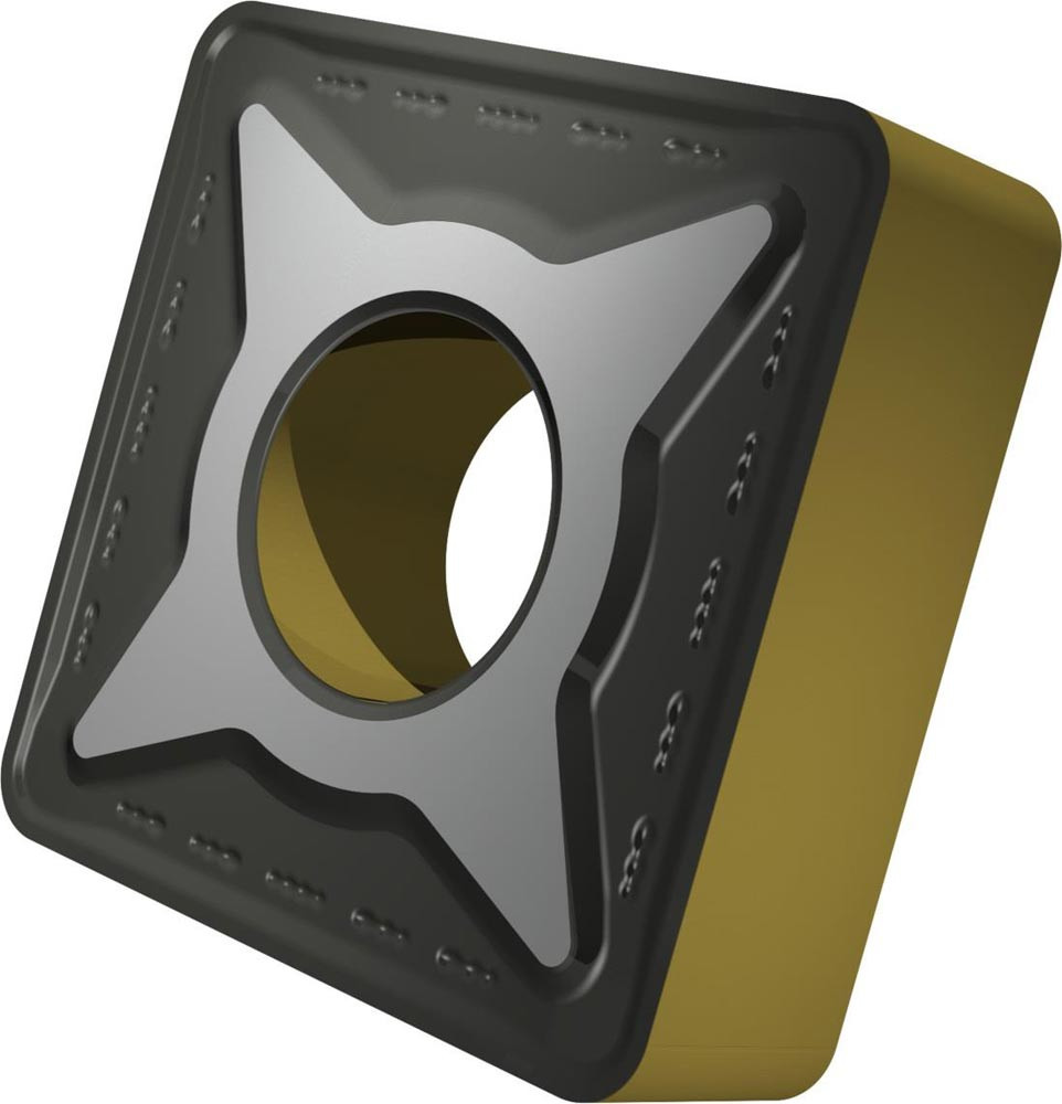 Doppelseitige negative Drehwendeschneidplatte · Viereckig mit Innenkreisdurchmesser von 19.05mm · 6.35mm Dick · 1.6mm Radius · Indexgenauigkeit nach ISO-Toleranzklasse-M · Spanbrecher RM mit verrundeter Schneidkante · im Substrat T9415 · MT-CVD beschichtet WC-Co Substrat im ISO-Bereich P05 -P30 · zum medium bis schruppen bearbeiten von Stählen