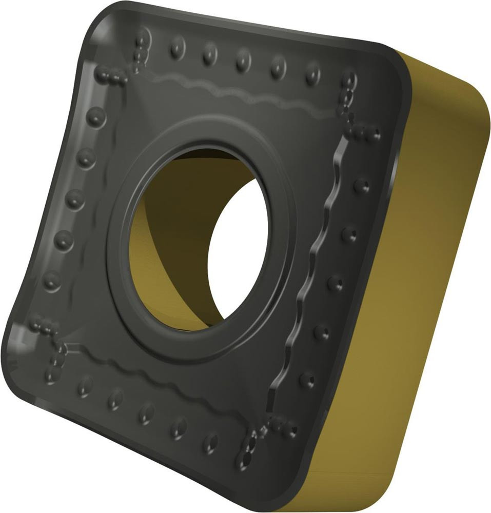 Doppelseitige negative Drehwendeschneidplatte · Viereckig mit Innenkreisdurchmesser von 19.05mm · 6.35mm Dick · 2.4mm Radius · Indexgenauigkeit nach ISO-Toleranzklasse-M · Spanbrecher OR mit verrundeter Schneidkante · im Substrat T9415 · MT-CVD beschichtet WC-Co Substrat im ISO-Bereich P05 -P30 · zum medium bis schweres schruppen bearbeiten von Stählen