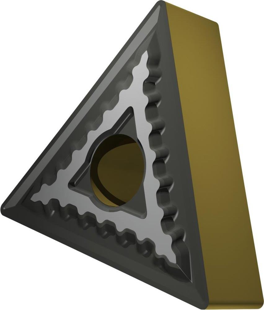 Doppelseitige negative Drehwendeschneidplatte · Triangular mit Innenkreisdurchmesser von 9.525mm · 4.76mm Dick · 0.4mm Radius · Indexgenauigkeit nach ISO-Toleranzklasse-M · Spanbrecher SM mit verrundeter Schneidkante · im Substrat T9415 · MT-CVD beschichtet WC-Co Substrat im ISO-Bereich P05 -P30 · zum schlichten bis schruppen bearbeiten von Stählen