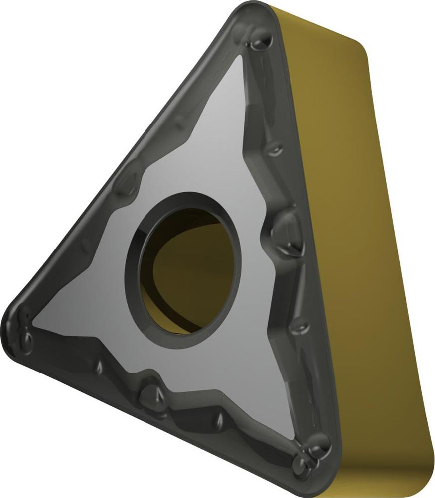 Doppelseitige negative Drehwendeschneidplatte · Triangular mit Innenkreisdurchmesser von 9.525mm · 4.76mm Dick · 1.2mm Radius · Indexgenauigkeit nach ISO-Toleranzklasse-M · Spanbrecher FM mit verrundeter Schneidkante · im Substrat T9415 · MT-CVD beschichtet WC-Co Substrat im ISO-Bereich P05 -P30 · zum schlichten bis medium bearbeiten von Stählen