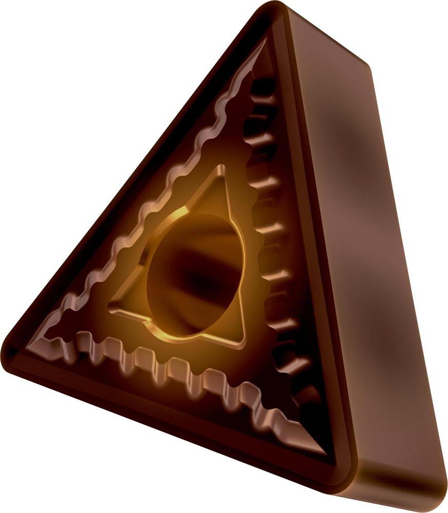 Doppelseitige negative Drehwendeschneidplatte · Triangular mit Innenkreisdurchmesser von 12.7mm · 4.76mm Dick · 0.8mm Radius · Indexgenauigkeit nach ISO-Toleranzklasse-M · Spanbrecher SM mit verrundeter Schneidkante · im Substrat T8430 · PVD beschichtet WC-Co Feinkornsubstrat in den ISO-Bereichen P20 -P40 und M20 -M35 · zum schlichten bis schruppen bearbeiten von Stählen und nichtrostenden Stählen
