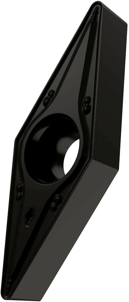 Einseitige positive Drehwendeschneidplatte · 35° Rhombisch mit 5° Freiwinkel · Innenkreisdurchmesser von 9.525mm · 4.76mm Dick · 1.2mm Radius · Indexgenauigkeit nach ISO-Toleranzklasse-M · Spanbrecher RM mit verrundeter Schneidkante · im Substrat T9325 · MT-CVD beschichtet functionally graded WC-Co carbide in den ISO-Bereichen P15 -P35 und M10 -M30 · zum schlichten bis schruppen bearbeiten von Stählen und nichtrostenden Stählen