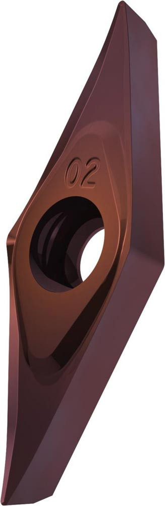 Einseitige positive Drehwendeschneidplatte · 35° Rhombisch mit 7° Freiwinkel · Innenkreisdurchmesser von 6.35mm · 2.38mm Dick · 0.2mm Radius · Indexgenauigkeit nach ISO-Toleranzklasse-G · Spanbrecher SF3 mit verrundeter Schneidkante · im Substrat T8415.