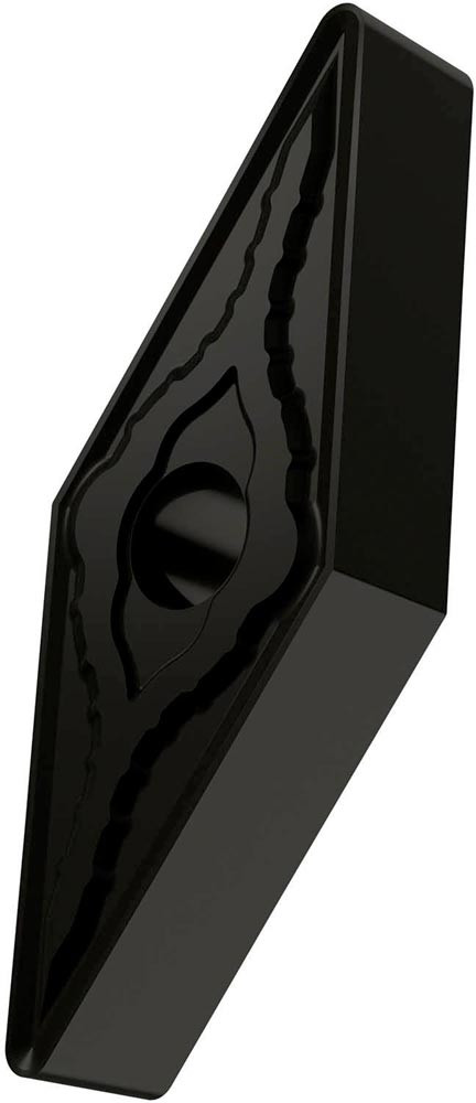 Doppelseitige negative Drehwendeschneidplatte · 35° Rhombisch mit Innenkreisdurchmesser von 9.525mm · 4.76mm Dick · 0.4mm Radius · Indexgenauigkeit nach ISO-Toleranzklasse-M · Spanbrecher SM mit verrundeter Schneidkante · im Substrat T7325 · MT-CVD beschichtet functionally graded WC-Co carbide in den ISO-Bereichen M10 -M25 und S10 -S25 · zum schlichten bis schruppen bearbeiten von nichtrostenden Stählen und Superlegierungen