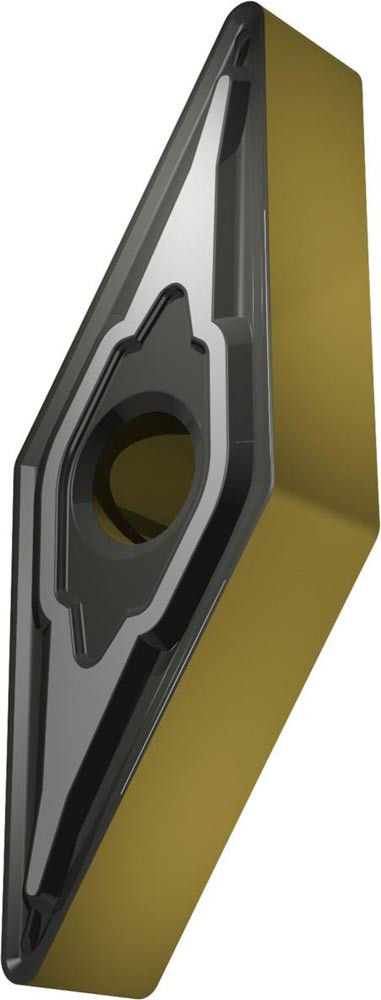 Doppelseitige negative Drehwendeschneidplatte · 35° Rhombisch mit Innenkreisdurchmesser von 9.525mm · 4.76mm Dick · 0.8mm Radius · Indexgenauigkeit nach ISO-Toleranzklasse-M · Spanbrecher M mit verrundeter Schneidkante · im Substrat T9415 · MT-CVD beschichtet WC-Co Substrat im ISO-Bereich P05 -P30 · zum schlichten bis schruppen bearbeiten von Stählen