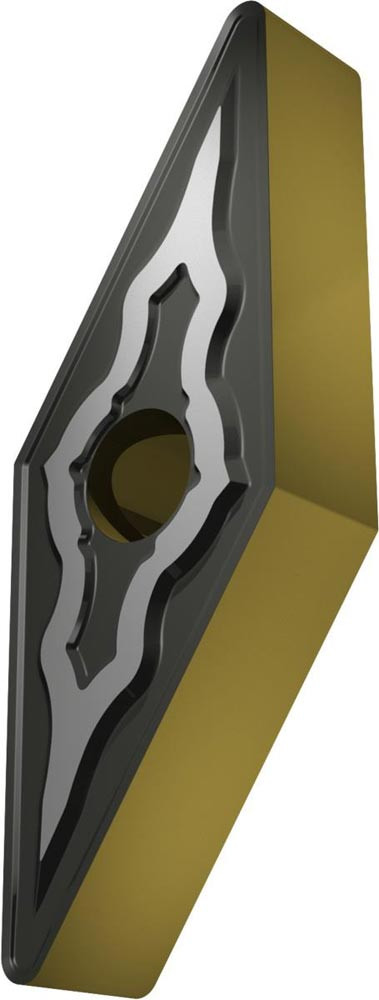 Doppelseitige negative Drehwendeschneidplatte · 35° Rhombisch mit Innenkreisdurchmesser von 9.525mm · 4.76mm Dick · 0.8mm Radius · Indexgenauigkeit nach ISO-Toleranzklasse-M · Spanbrecher NMR mit verrundeter Schneidkante · im Substrat T9415 · MT-CVD beschichtet WC-Co Substrat im ISO-Bereich P05 -P30 · zum schlichten bis schruppen bearbeiten von Stählen