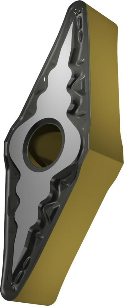 Doppelseitige negative Drehwendeschneidplatte · 35° Rhombisch mit Innenkreisdurchmesser von 9.525mm · 4.76mm Dick · 1.2mm Radius · Indexgenauigkeit nach ISO-Toleranzklasse-M · Spanbrecher FM mit verrundeter Schneidkante · im Substrat T9415 · MT-CVD beschichtet WC-Co Substrat im ISO-Bereich P05 -P30 · zum schlichten bis medium bearbeiten von Stählen