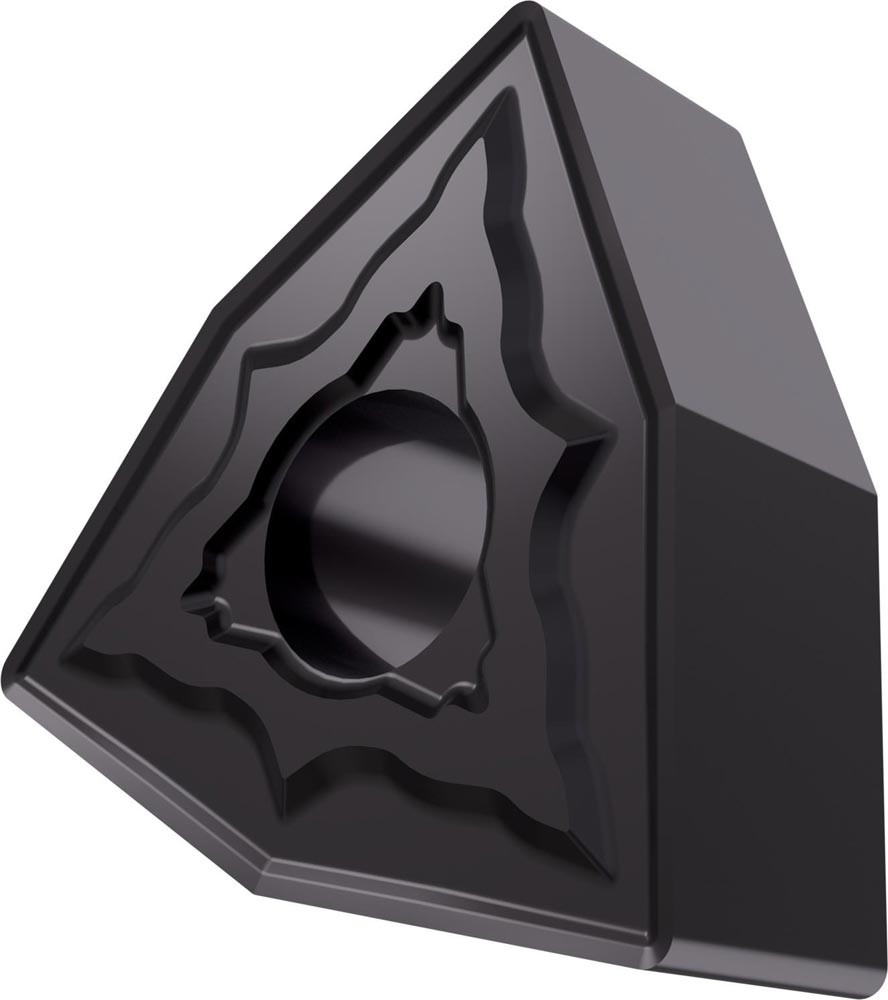 Doppelseitige negative Drehwendeschneidplatte · 80° Trigon mit Innenkreisdurchmesser von 9.525mm · 4.76mm Dick · 0.4mm Radius · Indexgenauigkeit nach ISO-Toleranzklasse-M · Spanbrecher NMR mit verrundeter Schneidkante · im Substrat T6310 · PVD beschichtet WC-Co Feinstkornsubstrat in den ISO-Bereichen P01 -P15/M01 -M15 und S01 -S15 · zum schlichten bis schruppen bearbeiten von Stählen · nichtrostenden Stählen und Superlegierungen