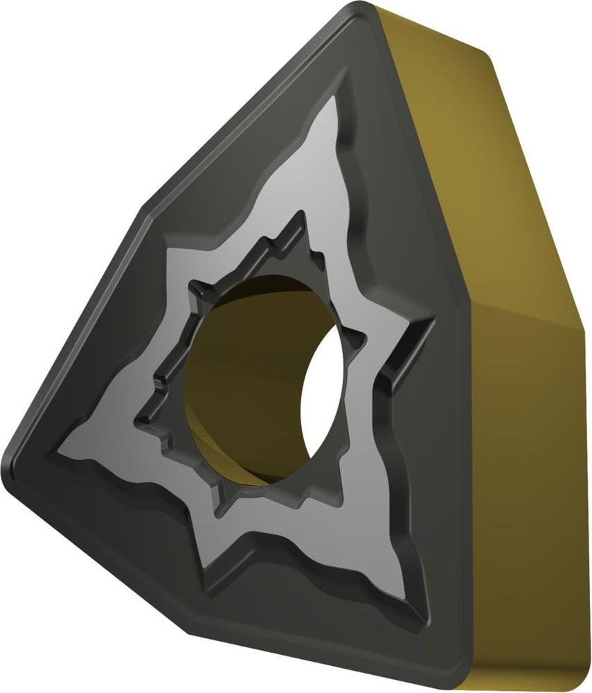 Doppelseitige negative Drehwendeschneidplatte · 80° Trigon mit Innenkreisdurchmesser von 12.7mm · 4.76mm Dick · 0.8mm Radius · Indexgenauigkeit nach ISO-Toleranzklasse-M · Spanbrecher NMR mit verrundeter Schneidkante · im Substrat T9415 · MT-CVD beschichtet WC-Co Substrat im ISO-Bereich P05 -P30 · zum schlichten bis schruppen bearbeiten von Stählen