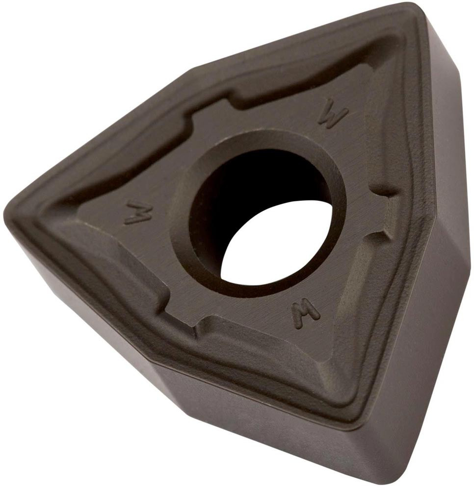 Doppelseitige negative Drehwendeschneidplatte · 80° Trigon mit Innenkreisdurchmesser von 12.7mm · 4.76mm Dick · 1.2mm Radius · Indexgenauigkeit nach ISO-Toleranzklasse-M · Spanbrecher M mit Wiper-Geometrie · im Substrat T9325 · MT-CVD beschichtet functionally graded WC-Co carbide im ISO-Bereich P15 -P35 · zum schlichten bis schruppen bearbeiten von Stählen
