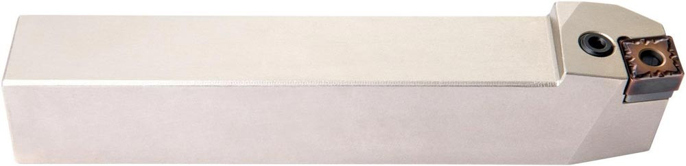Dreh-Trägerwerkzeug mit Kniehebelklemmung zum spannen von 80° Rhombus negative Wendeschneidplatten mit einem Innenkreisdurchmesser von 12.7mm · 4.76mm Dick (ISO Bezeichnung CN.. 1204.. ) · linke Ausführung zum 75° Stirndrehen mit Zylinderschaft · 25mm Werkzeughöhe x 25mm Breite x 150mm Länge für Kegeldrehen und Längsdrehen ohne Schulter