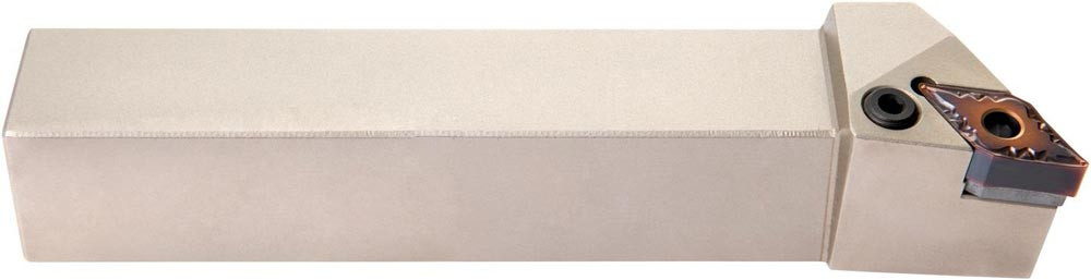 Dreh-Trägerwerkzeug mit Kniehebelklemmung zum spannen von 55° Rhombus negative Wendeschneidplatten mit einem Innenkreisdurchmesser von 12.7mm · 6.35mm Dick (ISO Bezeichnung DN.. 1506.. ) · linke Ausführung zum 93° Stirndrehen mit abgesetzem Schaft · 20mm Werkzeughöhe x 20mm Breite x 125mm Länge für Kegeldrehen · Kopierdrehen in einer und mehreren Richtungen und Längsdrehen mit und ohne Schulter