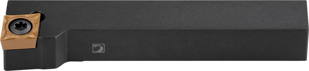 Dreh-Trägerwerkzeug mit Schraubklemmung zum spannen von 80° Rhombus positive Wendeschneidplatten mit einem Innenkreisdurchmesser von 7.94mm · 3.18mm Dick (ISO Bezeichnung CC.. 0803.. ) · rechte Ausführung zum 95° Stirn-und Längsdrehen mit abgesetzem Schaft · 16mm Werkzeughöhe x 16mm Breite x 100mm Länge für entgraten · Kegeldrehen · Stirndrehen mit und ohne Schulter und Längsdrehen mit und ohne Schulter