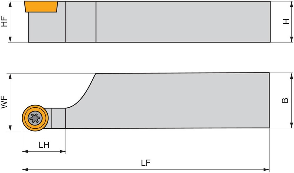Dreh-Trägerwerkzeug mit Schraubklemmung zum spannen von Rund positive Wendeschneidplatten mit einem Durchmesser von 8mm · 3.18mm Dick (ISO Bezeichnung RC.. 0803MO ) · rechte Ausführung zum Stirn-and Längsdrehen mit Zylinderschaft · 32mm Werkzeughöhe x 25mm Breite x 170mm Länge für Kegeldrehen · Kopierdrehen in einer und mehreren Richtungen und Längsdrehen ohne Schulter